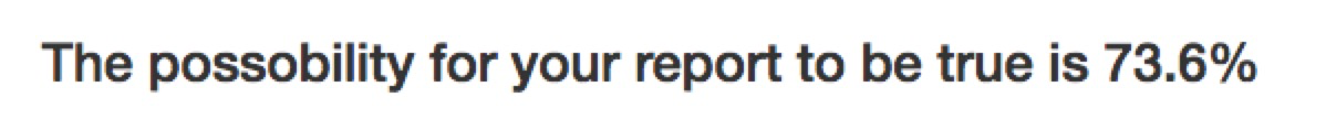 After user submit the form, we give the probability that his report is true: